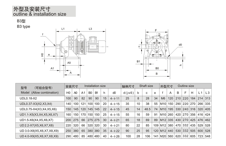 二、擺線針輪減速機外型及安裝尺寸及擺線針輪減速器性能參數(shù)