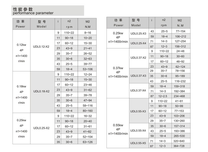 4、輸入軸的轉速額定轉數(shù)為1500轉/分,在輸入功率大于18.5千瓦時建議采用960轉/分的6極電機配套使用。